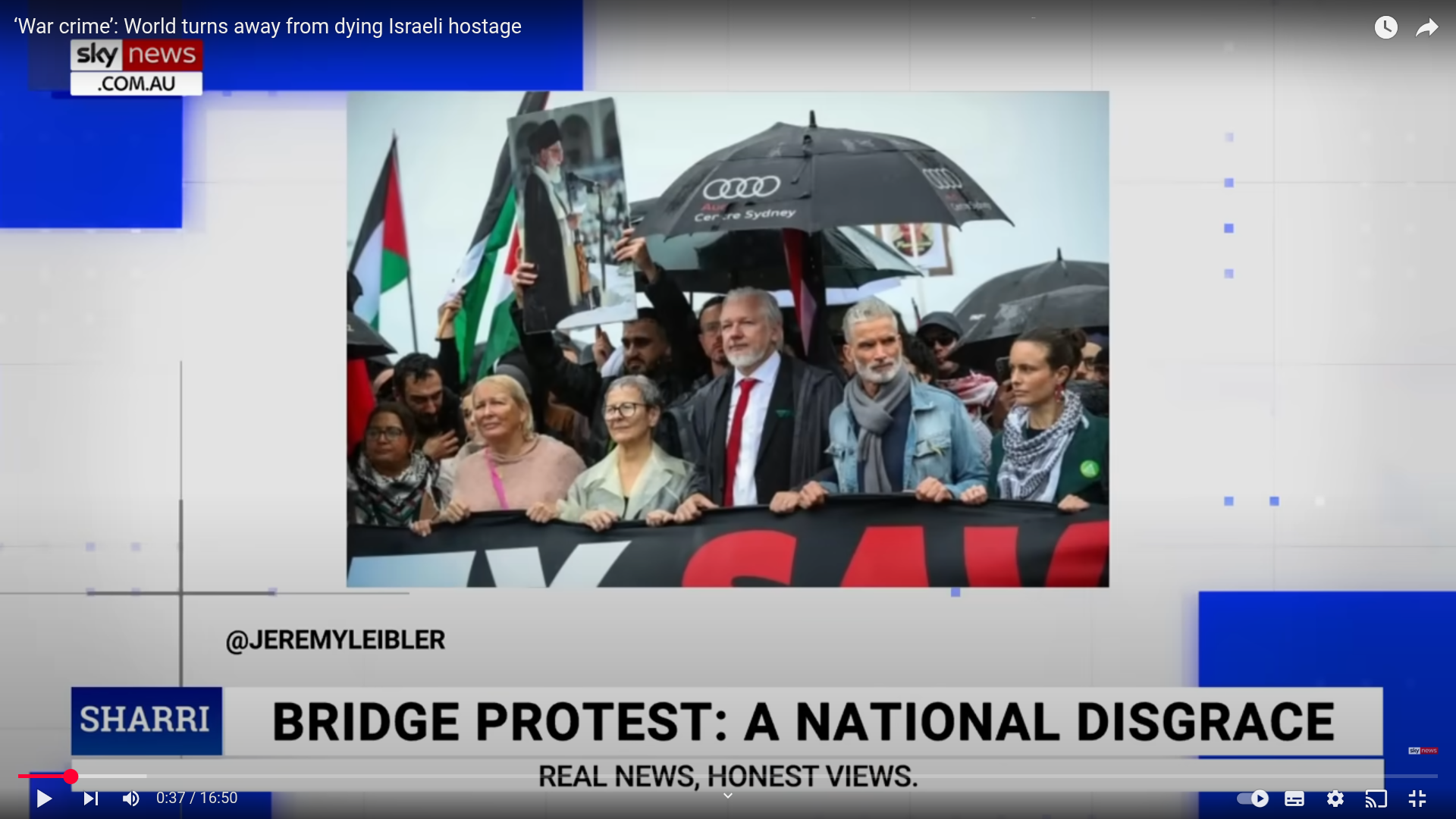 Julian Assange, and former SBS Soccer commentator Craig “Fozzy” Foster to his left and former SBS “journalist” Mary Kostakidis to his right at the pro-FAKESTINE Sydney Harbour Bridge March on Sunday August 3rd, 2025. As to how fake FAKESTINE is, go to page 15 HERE and search for “Mohsen”. SBS, the Australian Public ethnic broadcaster, stands for “Special Broadcasting Service“, but given their blood-libellous coverage of the Israel-Hamas war post October 7th, one could label them “SBl-S” — “Special Blood-libel Service”.
