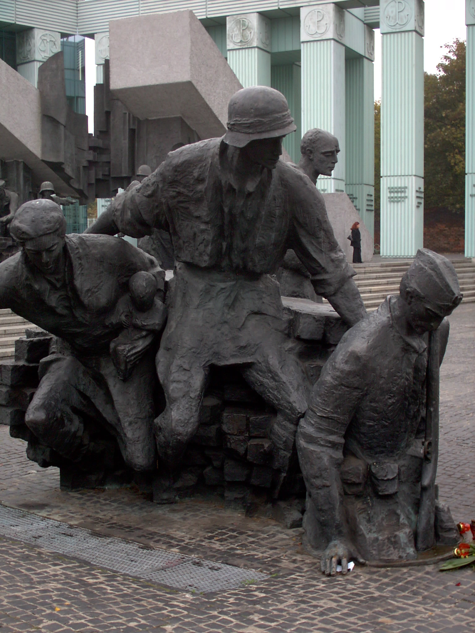 Photo I took in Krasiński Square on Saturday 9th October 2004 of the 1944 Warsaw Rising monument depicting insurgents entering the Sewers.